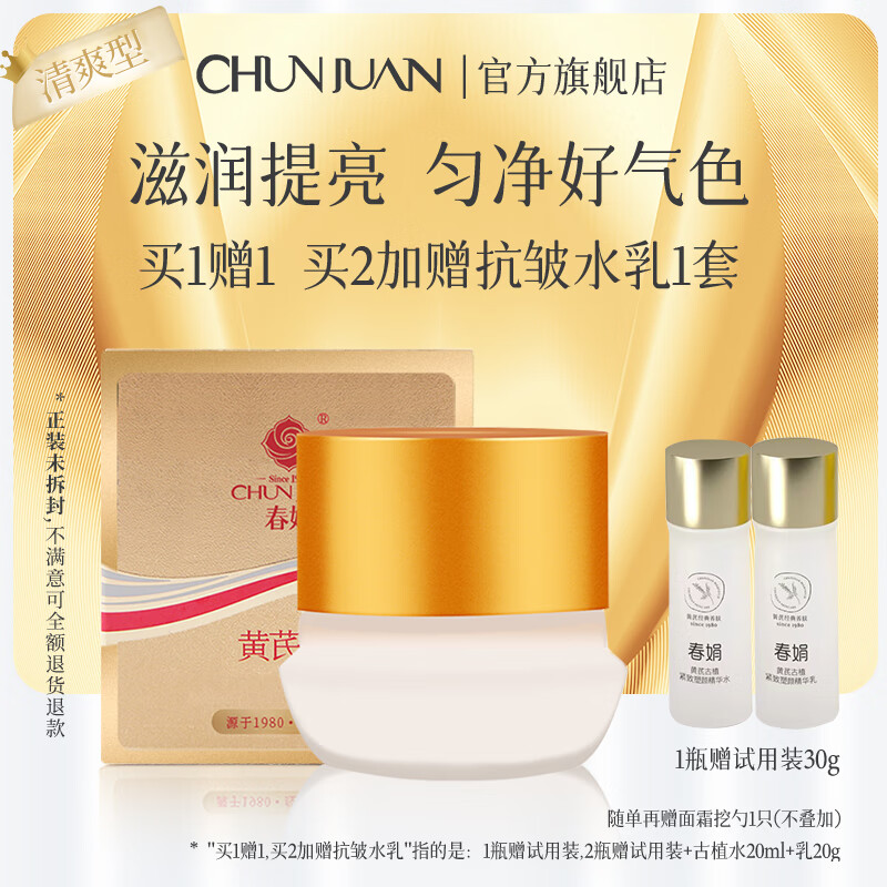 春娟黄芪霜提亮肤色改善暗沉补水保湿滋养经典老国货护肤男女士面霜 清爽型30g(油皮/混油皮&夏季)