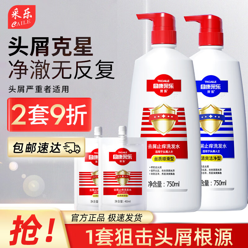 采乐酮康洗发水控油去屑洗发水止痒头皮清洁洗发露清爽型头痒男女适用 控油去屑止痒红蓝750ml*2+40ml*2