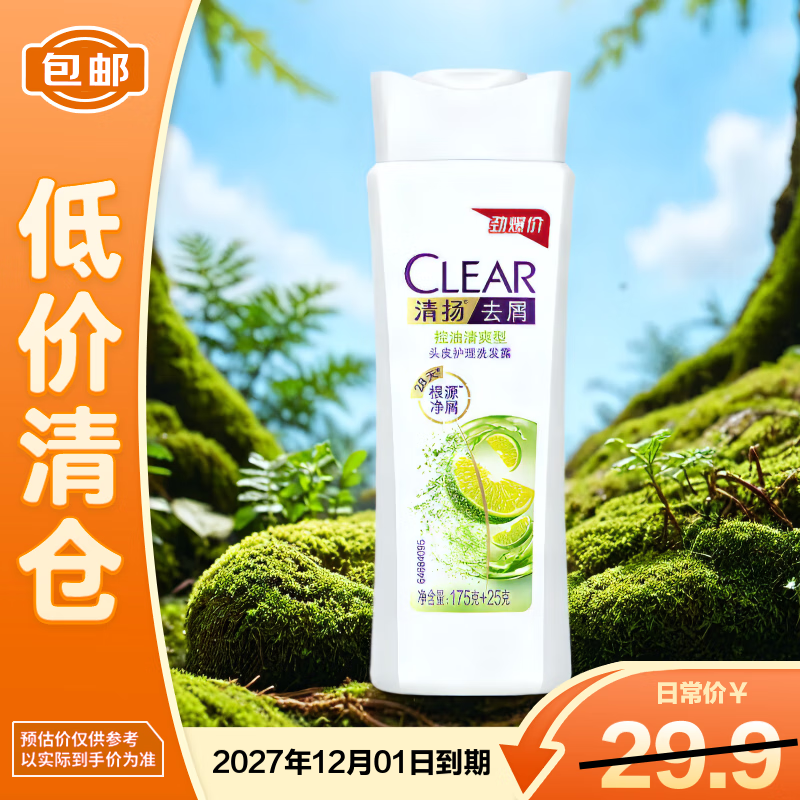 清扬(CLEAR)去屑控油清爽型头皮护理洗发露175g+25g洗发水【临期清仓】