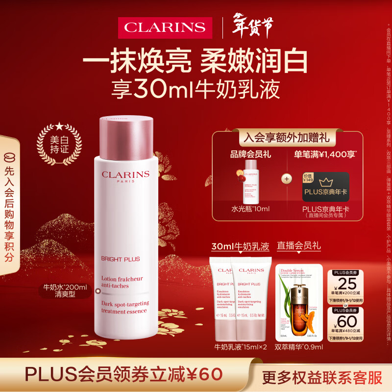 娇韵诗美白牛奶水200ml爽肤水清爽型淡纹保湿提亮护肤品化妆品新年礼物