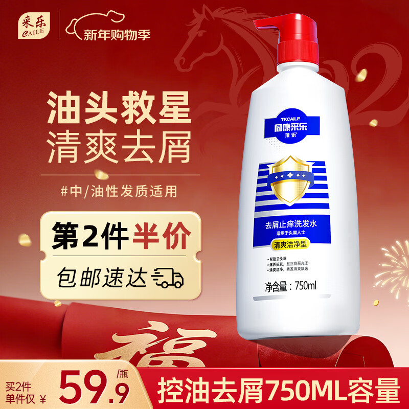 采乐同康采乐控油去屑洗发水止痒洗发露清爽型洗发液男女士通用750ml