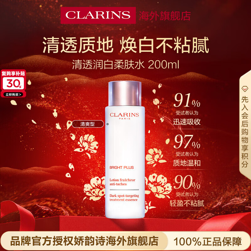 娇韵诗Clarins透亮焕白柔肤液200ml清爽型美白水乳保湿女生生日新年礼物