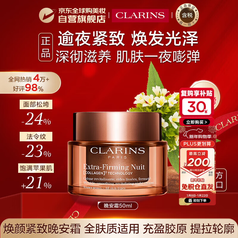 娇韵诗Clarins升级弹簧晚霜50ml清爽型抗皱夜间修护女双12生日新年礼物