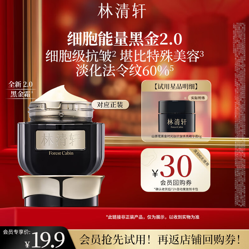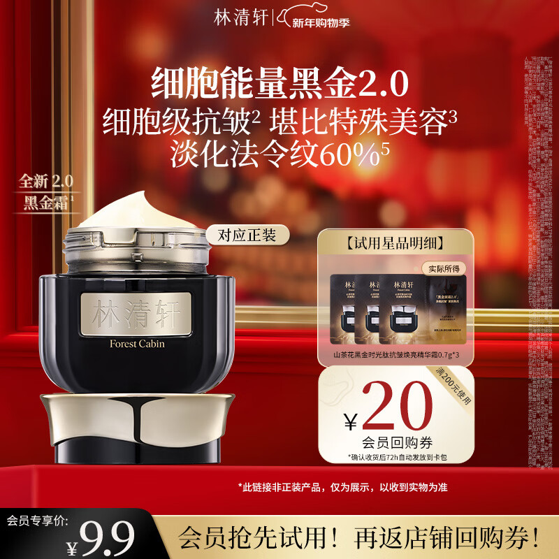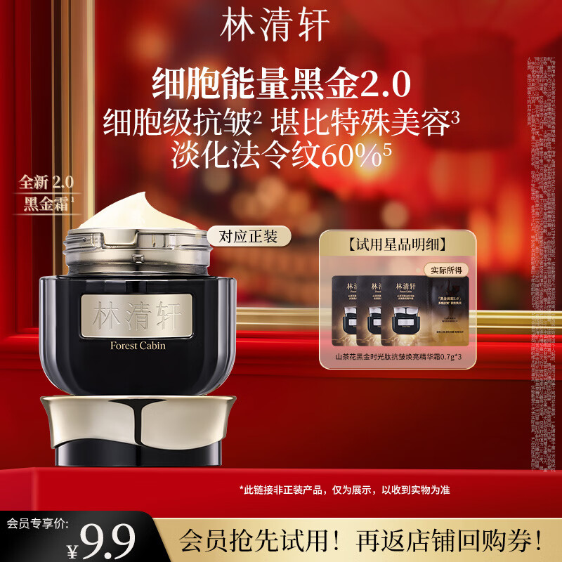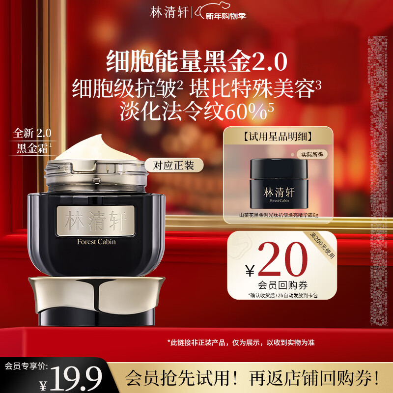 林清轩山茶花黑金时光肽抗皱焕亮精华霜补水生日礼物送人送女友送男友 【会员派样】2.0黑金霜6g