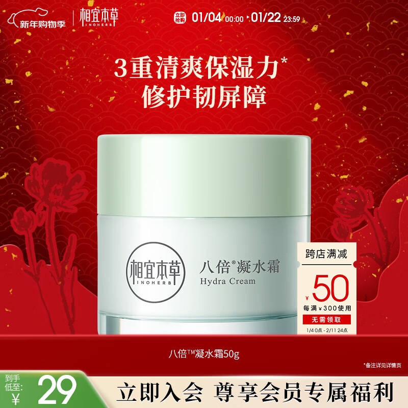 相宜本草八倍凝水霜50g 清爽补水保湿滋润面霜护肤品新年礼物