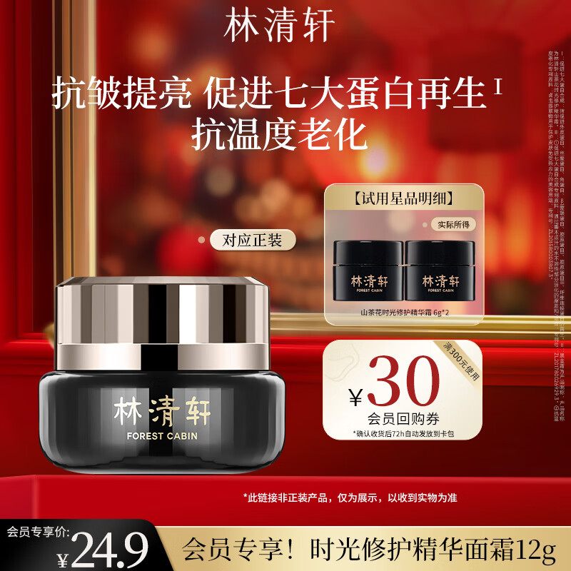 林清轩山茶花黑金时光肽抗皱焕亮精华霜补水生日礼物送人送女友送男友 【会员派样】1.0时光精华霜6g*2