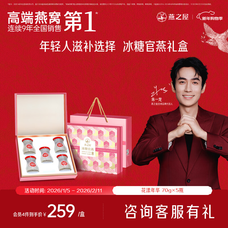 燕之屋【礼物】即食燕窝冰糖滋补品冰糖官燕花漾礼盒装70g*5瓶 花漾款即食燕窝 70g*5瓶 礼盒装
