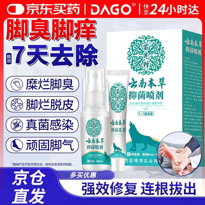 苗先锋云南本草狼毒真菌王套装足部抑菌脚气喷剂 【一盒装】狼毒真菌王60ml/喷剂加20克乳膏/盒