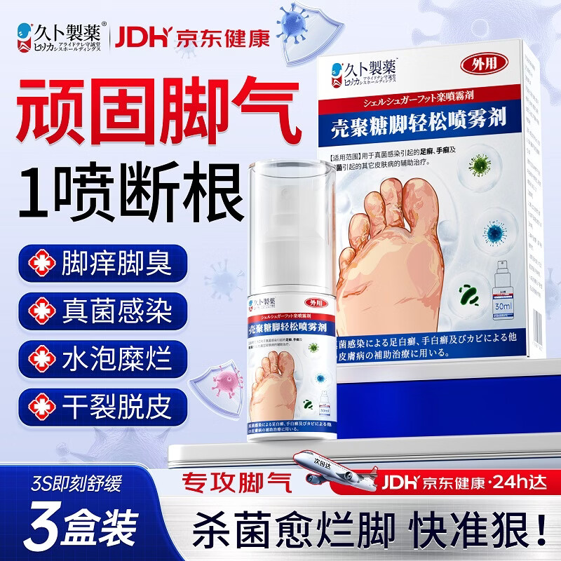 久卜制药脚气软膏药止痒脱皮烂脚丫真菌感染狼毒王喷雾剂脚臭痒克星治 3盒