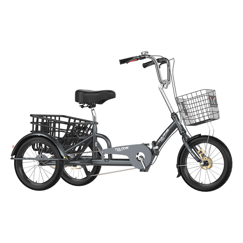 玉龙16寸折叠车成人学生轻便代步脚踏户外休闲三轮车进电梯折叠车 月影灰