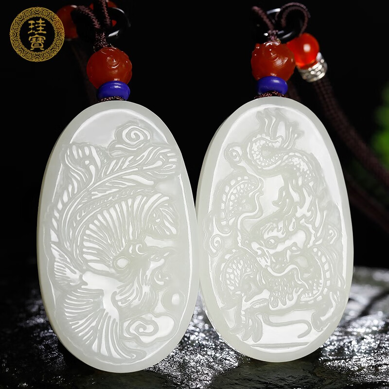 珪宝和田玉龙凤吊坠男女款玉坠对配情侣一对玉佩玉石挂件玉器附证书