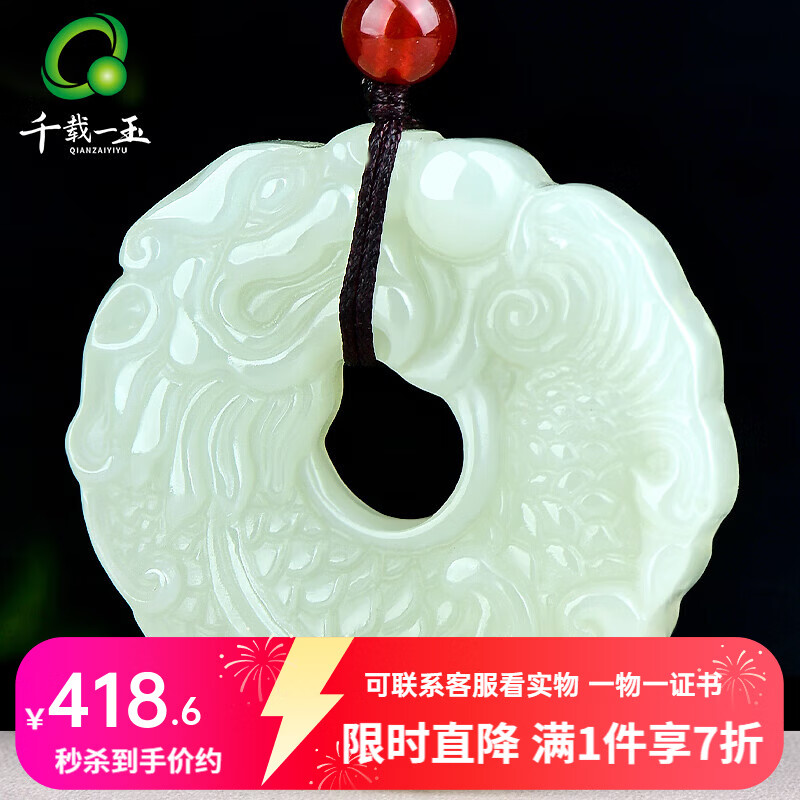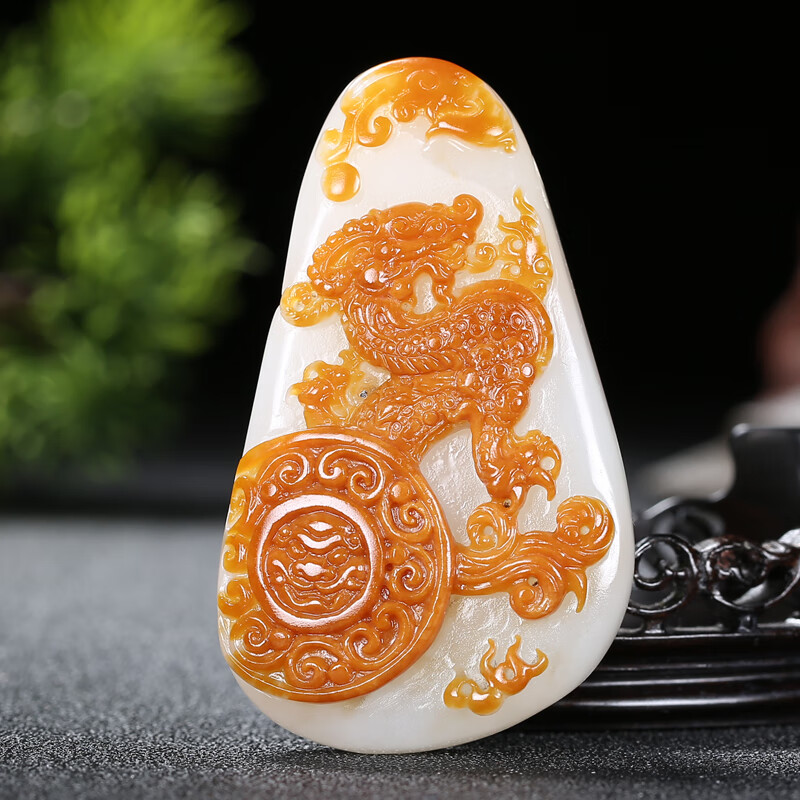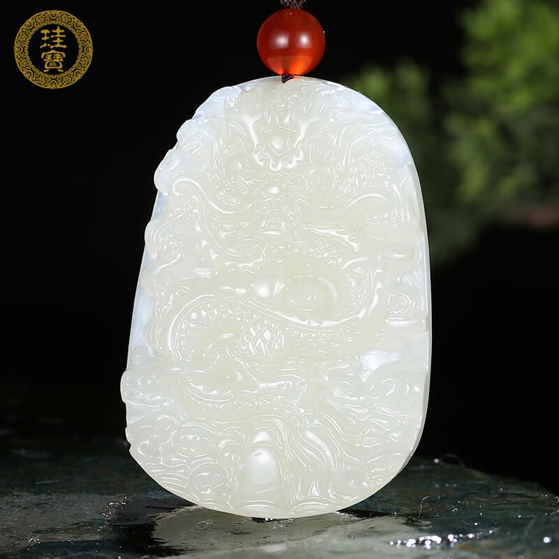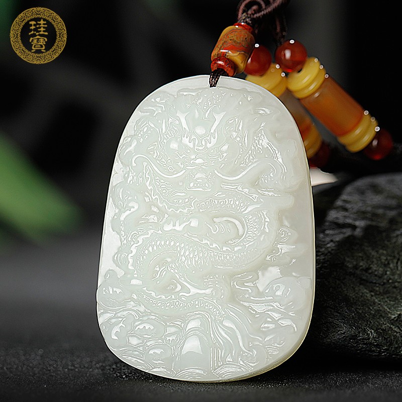 千载一玉新年礼物和田玉龙牌吊坠 男女士本命年生肖龙玉石玉佩 品牌珠宝