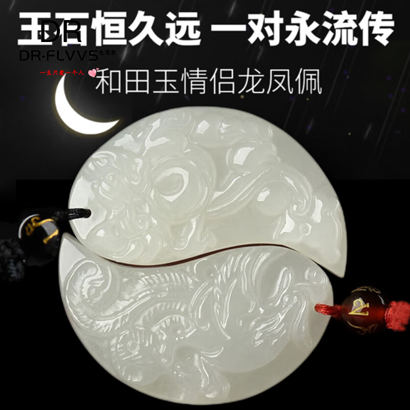 胖东来同款龙凤佩和田玉情侣吊坠一对男女龙凤玉佩七夕白玉石挂件 白玉龙凤玉佩(幸福美满)
