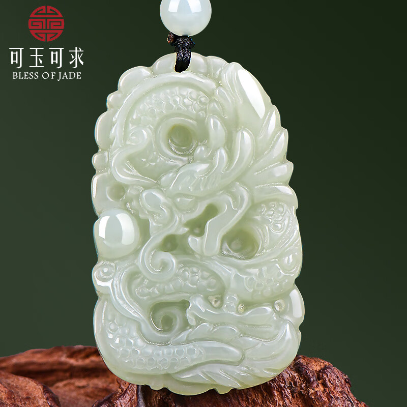 可玉可求新年礼物 和田玉龙牌玉石吊坠 寓意有龙则灵 生意兴隆 款一M0081z