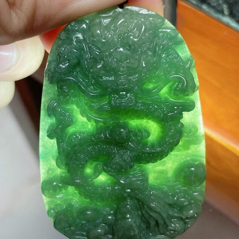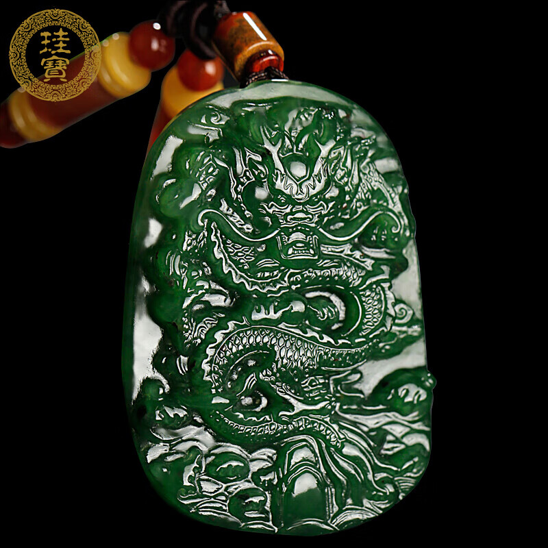 DL 1998胖东来同款翡翠龙牌吊坠天l然a级糯玉男士大玉龙王十二生肖腾四海 翡翠龙腾四海双面精雕含证书绳子