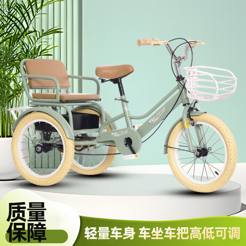 玉龙儿童三轮车亲子车3-11岁踏步车双人骑行安全双刹便载人自行车 浅绿色 单速 18英寸(105-135)