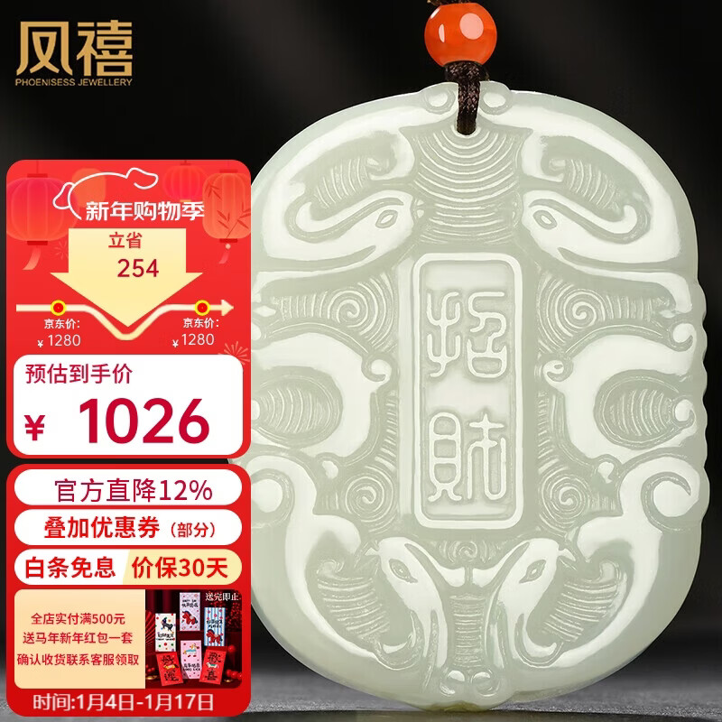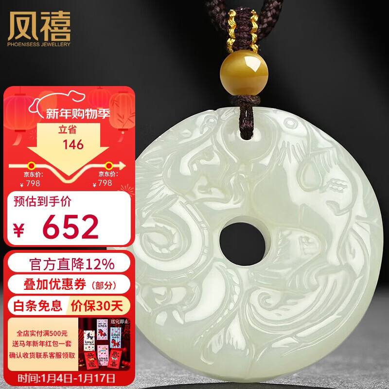 凤禧珠宝天然和田玉龙凤吊坠男女士款玉石项链玉牌生日新年礼物实用