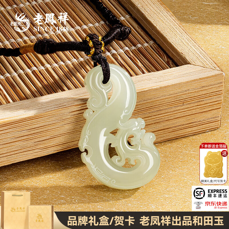 老凤祥和田玉吊坠玉坠挂件青玉龙吊坠送老公男朋友生日礼物玉类新年礼物 和田青玉龙吊坠