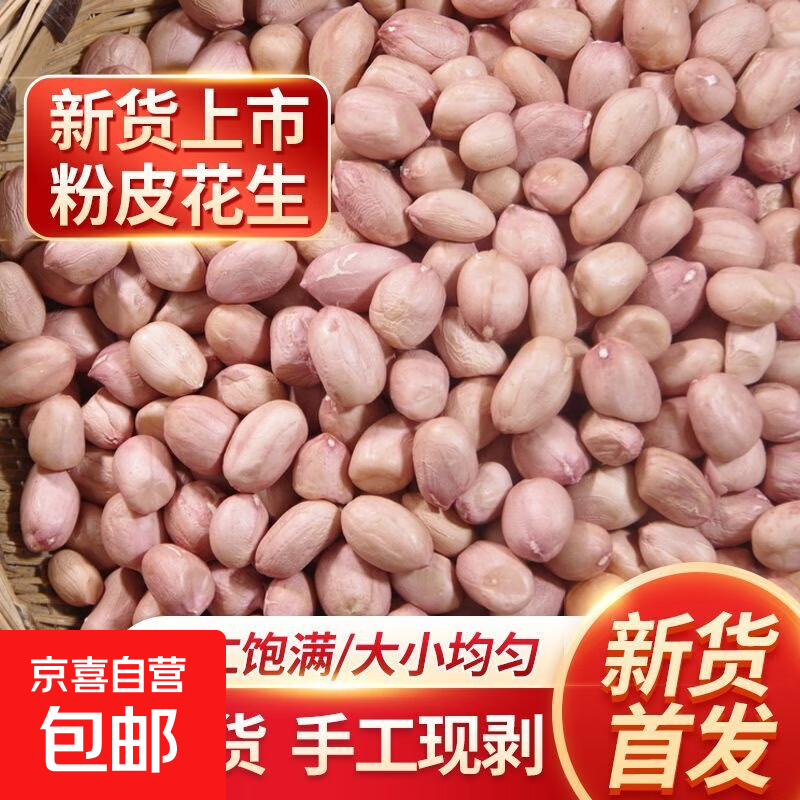 生花生米 新鲜现剥中等颗粒粉红皮带壳不带壳榨油白沙花生 生粉皮花生100g
