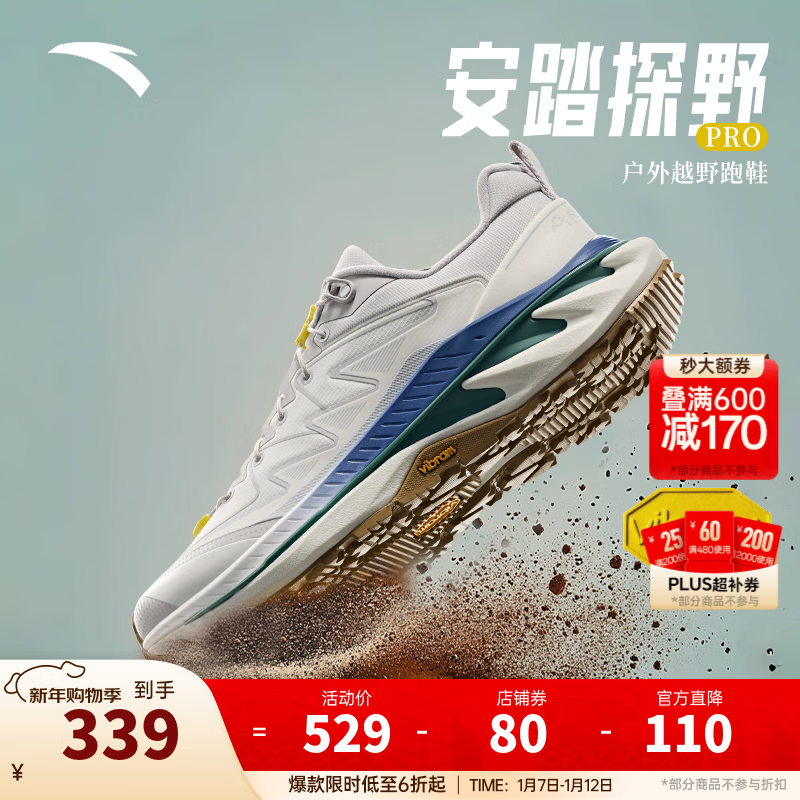 安踏探野PRO V2丨越野跑鞋男款专业户外徒步鞋耐磨减震透气运动跑鞋 【防泼水】象牙白/灰5589-4 41 (男8)