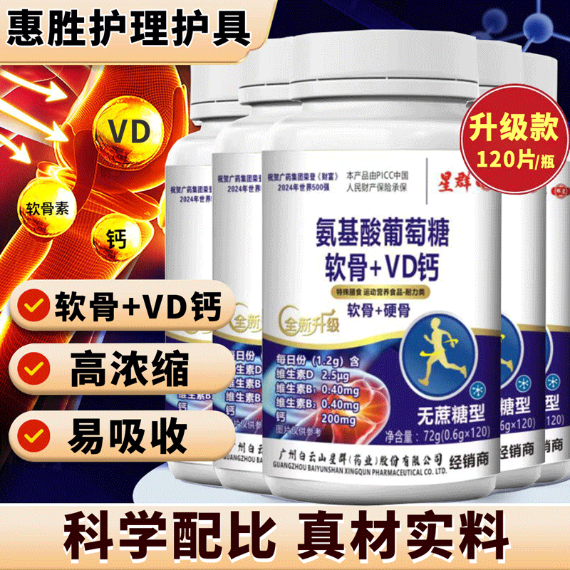 白云山星群氨基酸葡萄糖软骨素加VD钙片非中老年钙片骨密度增 【买2送1:90%选择】 100片*3瓶 【周期装】