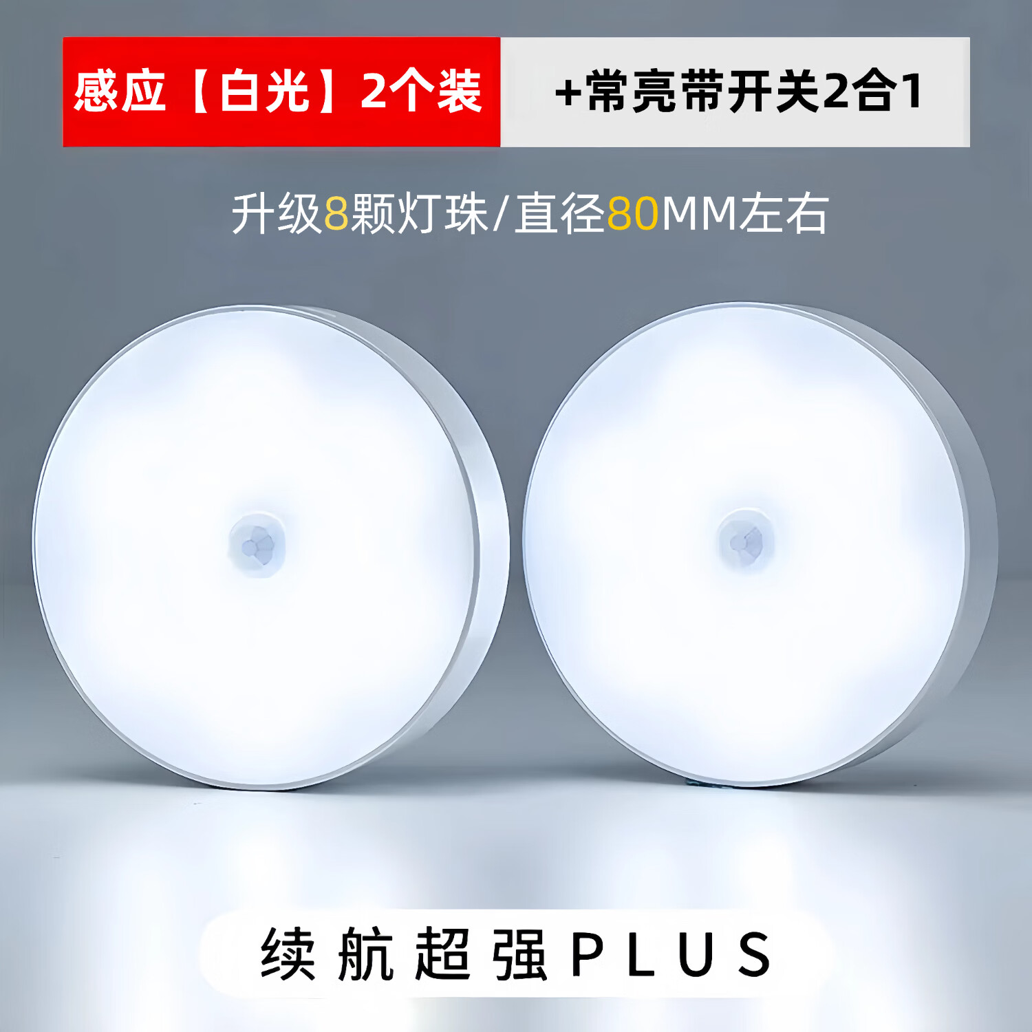 艾勒丝汀【自动感应+常亮带开关】声控小夜灯夜间婴儿喂奶智能感应灯卧室起夜睡眠灯人来即灭即亮厕所走廊 2只装【感应白光】+常亮带开关 护眼柔光丨2026新款丨无需布线·磁吸免打孔安装