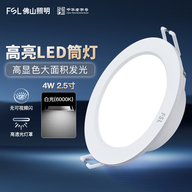 FSL佛山照明 筒灯防眩光过道楼道车库嵌入式孔灯天花灯 2.5寸 4W 白光6000K 开孔75mm