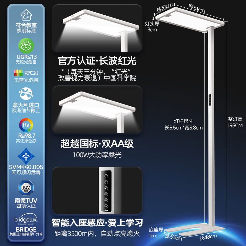 百家丽BEGHELLI意大利Beghelli全光谱大路灯护眼看书学习灯儿童落地护眼灯 普通版老客18m2空间场景适用于桌面学习室内活动