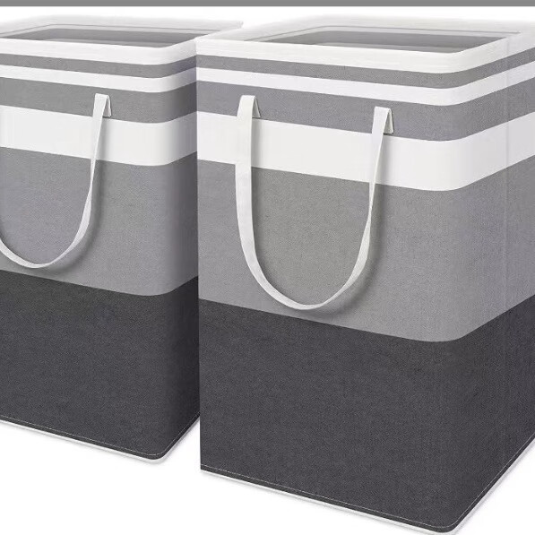 百家跨境收纳箱瑜伽垫收纳筐脏衣篓玩具收纳桶篮子工厂现货 黑灰条纹一个装 40*30*60