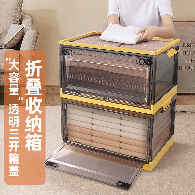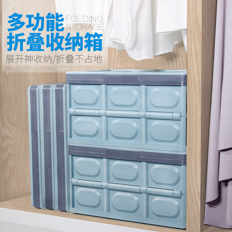 百家好世塑料有盖大号折叠收纳整理箱衣物杂物玩具储物盒家用车载 蓝色 53cmx36cmx29.5cm