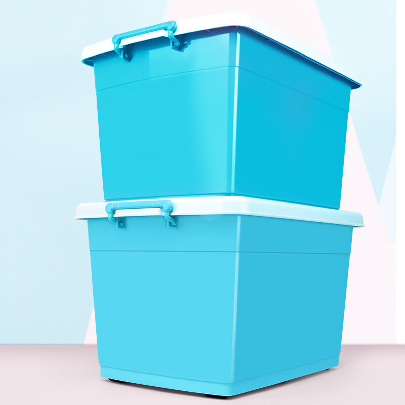 百家好世大号收纳箱塑料衣物玩具整理箱密封收纳箱便捷带轮储物箱 天蓝色1个装60L