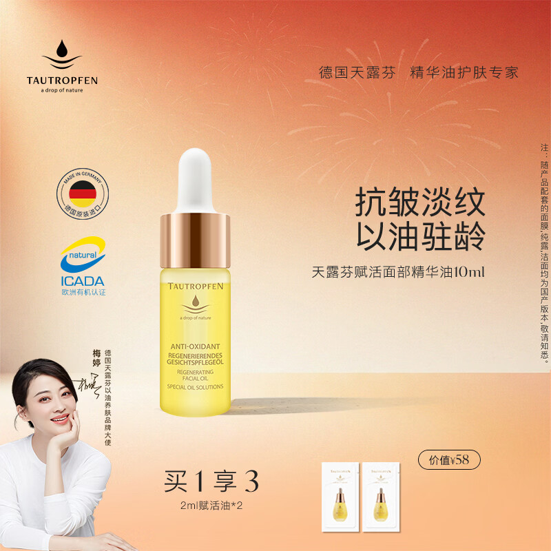 天露芬(TAUTROPFEN)尾穗苋赋活面部精华油 干皮保湿修护抗皱淡纹以油养肤 生日礼物 35ml【享同款47ml】买1享3