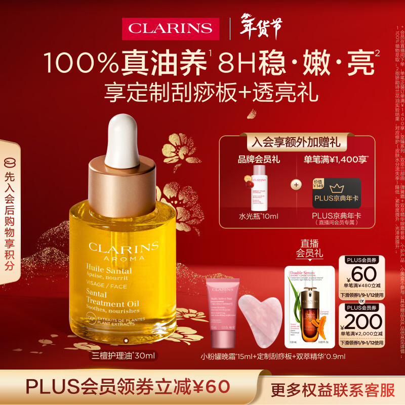 娇韵诗三檀面部精华油30ml干皮补水保湿细腻舒缓护肤品化妆品新年礼物