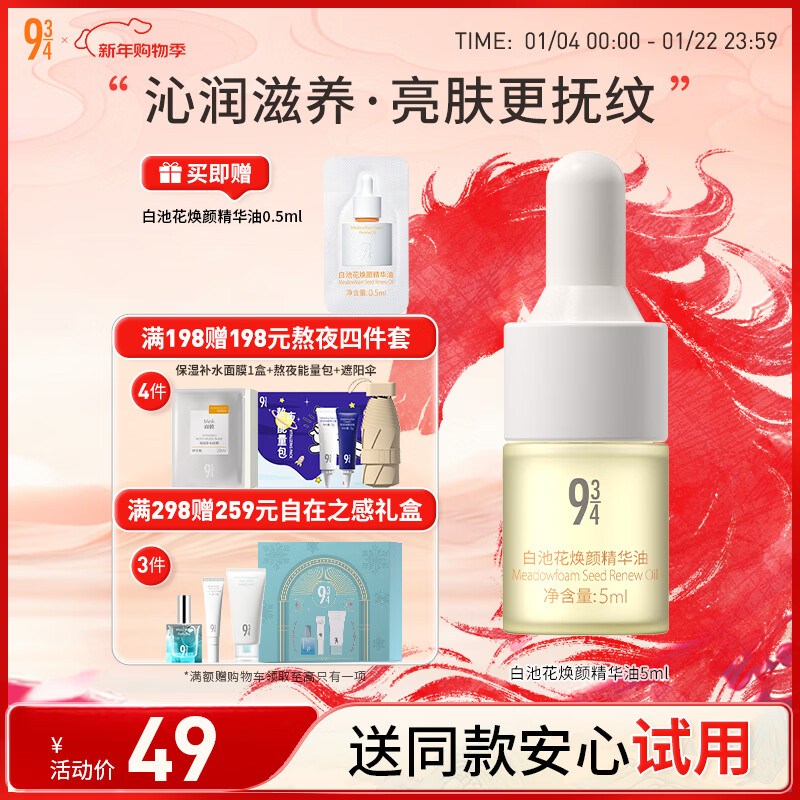934 白池花焕颜精华油滋养滋润淡纹舒缓泛红大干皮新年礼物送人 5ml