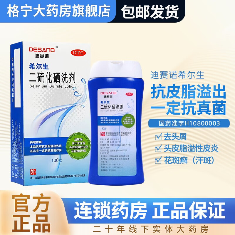 【包邮】迪赛诺希尔生二硫化硒洗剂洗发水 2.5%*100g/盒 毛囊炎皮屑头皮脂溢性皮炎花斑癣汗斑 1盒【大规格150g/盒】