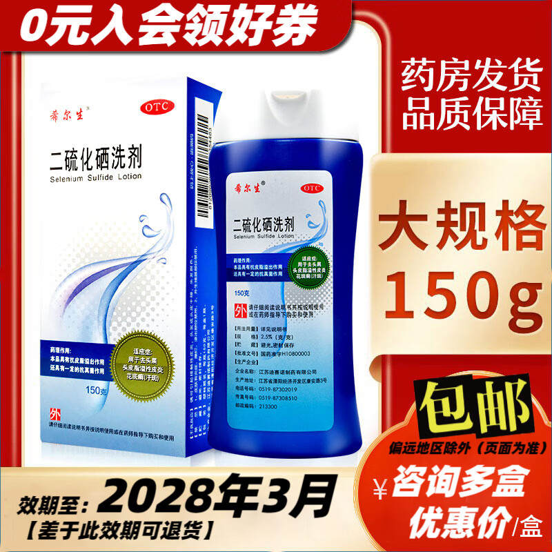 希尔生二硫化硒洗剂 2.5%*150g 适用于头皮屑头皮脂溢性皮炎花斑癣(汗斑)二硫化硒洗发水二氧化硒去屑洗发水