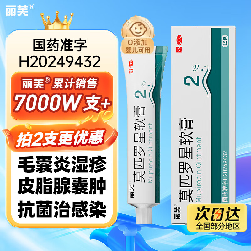 丽芙莫匹罗星软膏2%15g湿疹毛囊炎私处脓疱病疖肿火疖子皮脂腺囊肿疙瘩抗菌治瘙痒皮肤感染创伤