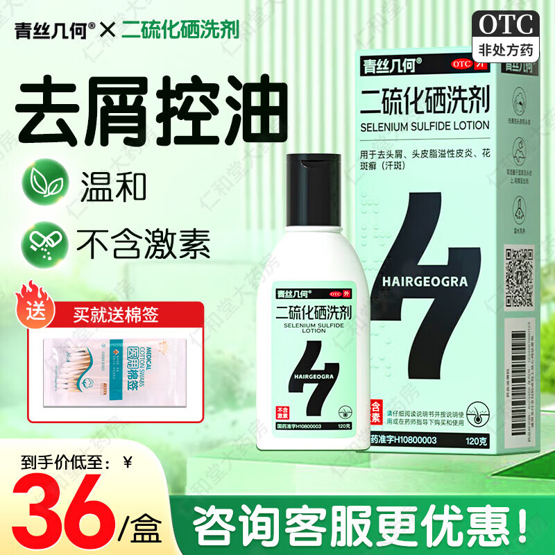 青丝几何 二硫化硒洗剂2.5%*120g去头屑花斑癣洗发水药用头皮脂溢性皮炎控油毛囊炎清洁洗发膏非酮康唑