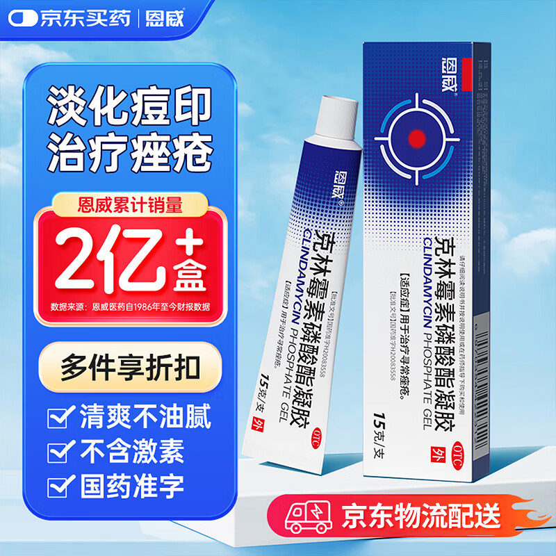 恩威 克林霉素磷酸酯凝胶15g 复方克林霉素乳膏软膏皮脂腺囊肿脂溢性皮炎毛囊炎痤疮祛痘印痘痘消炎专用药膏