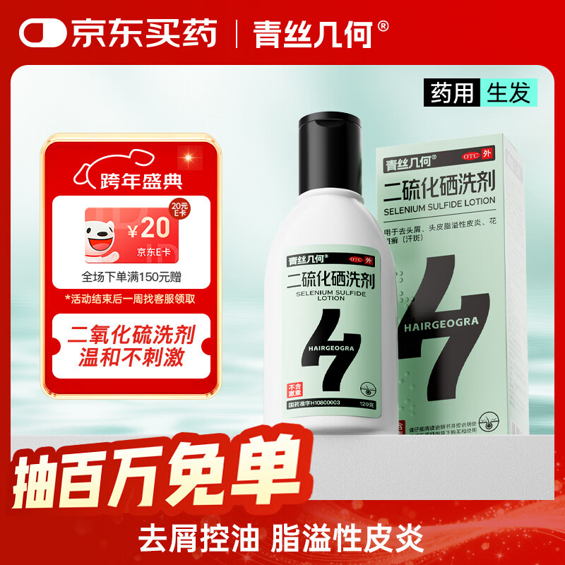 青丝几何 二硫化硒洗剂 2.5%*120g/盒 控油止痒去头屑头皮脂溢性皮炎花斑癣(汗斑)去屑洗发水 1盒装【黄精浓度2.5%,0激素去屑】