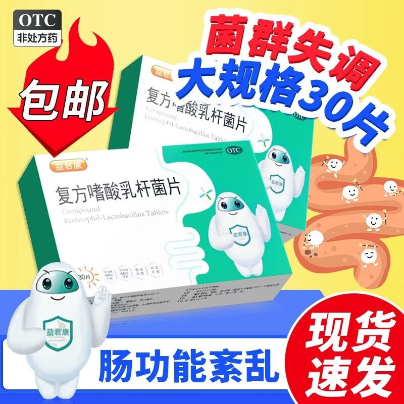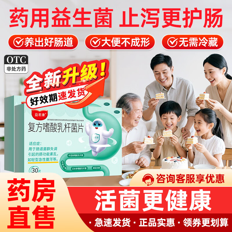 [益君康]复方嗜酸乳杆菌片 0.5g*30片 1盒装 改善肠功能紊乱 腹泻 有效保护肠胃 老少皆宜 无须冷藏 便于携带 27年3月过期