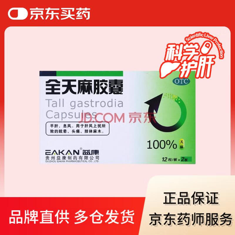 益康 全天麻胶囊 0.5g/粒*12粒/板*2板 平肝 息风 用于肝风上扰所致的眩晕 头痛 肢体麻木 科学保肝护肝