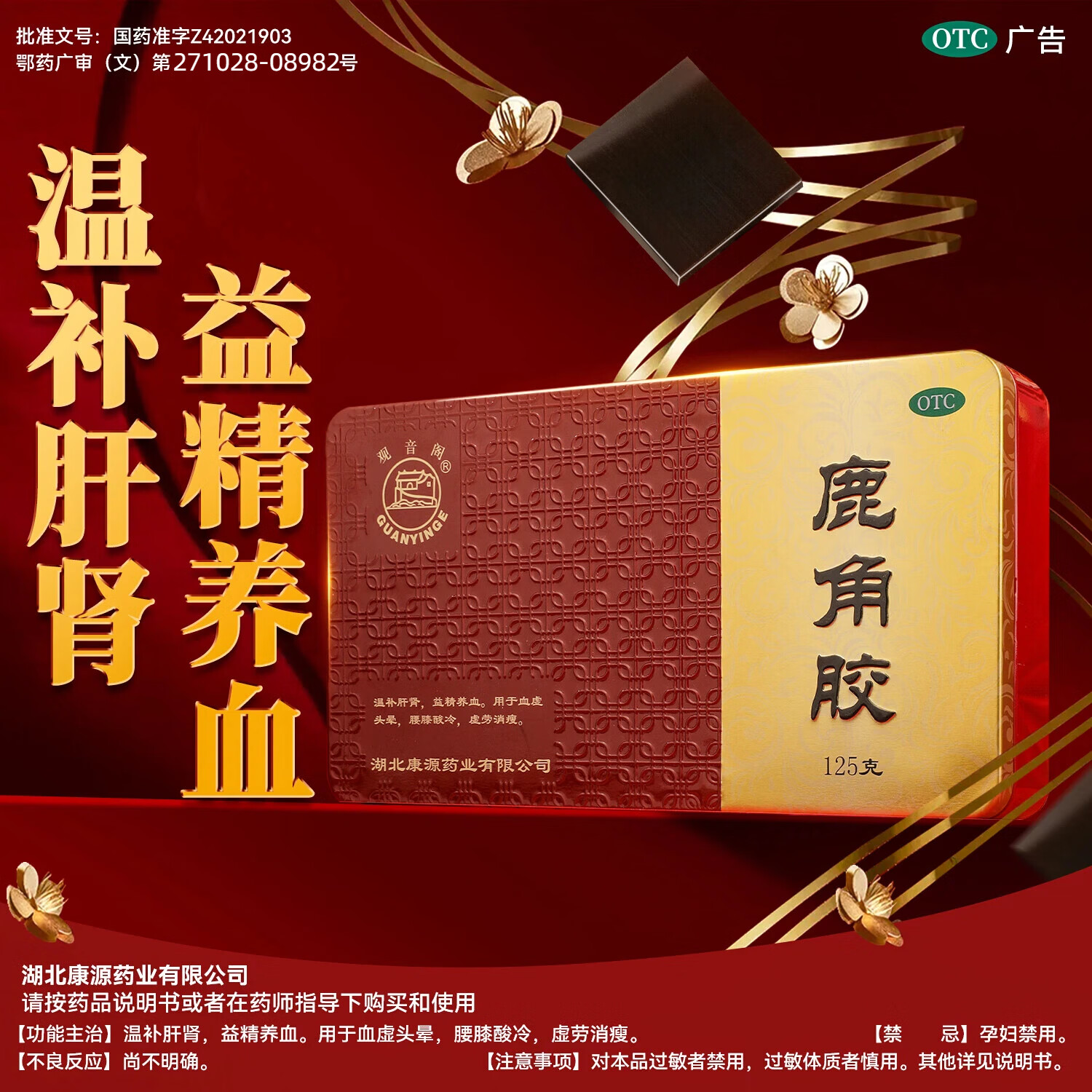 观音阁【康源药业直营】观音阁鹿角胶125g 温补肝肾,益精养血,正品国药准字OTC中成药铁盒装 125g铁盒装-有效期到2029年