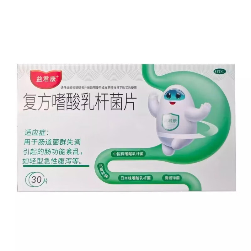 [益君康]复方嗜酸乳杆菌片 0.5g*30片 1盒装 30片 益生菌口服轻型急性腹泻肠功能紊乱 调理肠胃道菌群失调腹泻益生菌