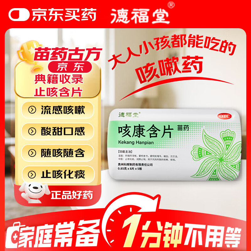 德福堂 咳康含片40片 止咳药咳嗽药 化痰清肺 益肺止咳 感冒流感 咳嗽 京东大药房 止咳含片儿童大人 新冠