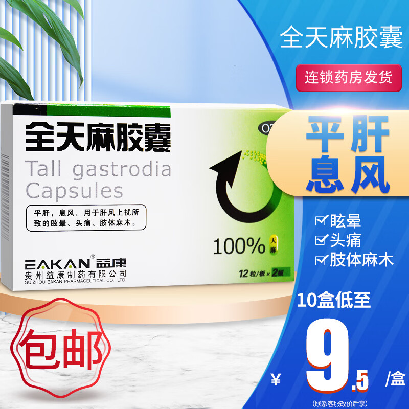 60粒大规格】益康 全天麻胶囊 60粒 肝风上扰所致眩晕头痛肢体麻木 3盒