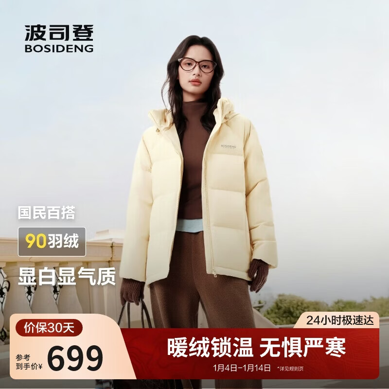 波司登25年冬季羽绒服90绒女士修身短款休闲加厚连帽休闲百搭外套