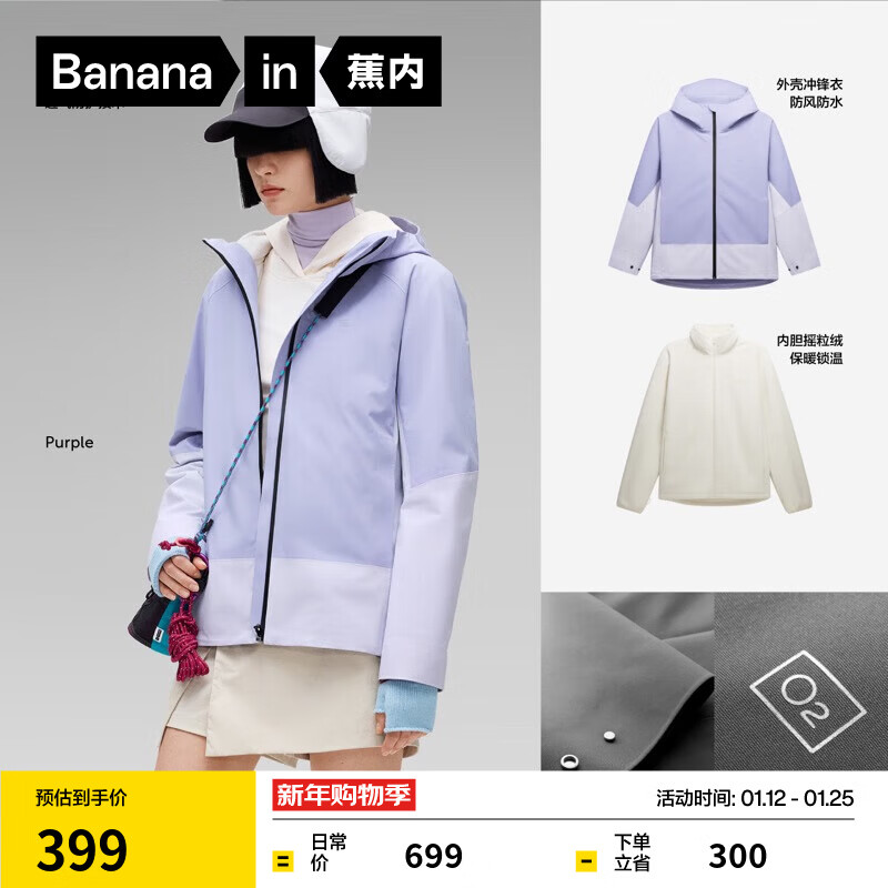 蕉内(Bananain)【赵露思同款】302Proof Pro女士三合一冲锋衣秋冬新款短外套 薄雾紫拼薄纱紫 S