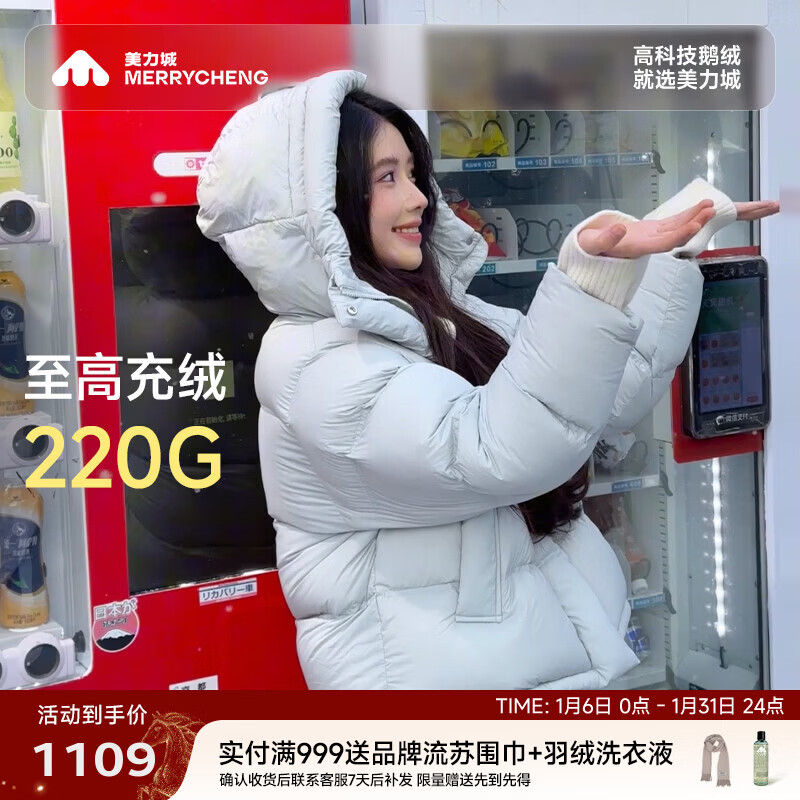 美力城暖天鹅羽绒服女装短款极地鹅绒百搭保暖外套 钛金白 S