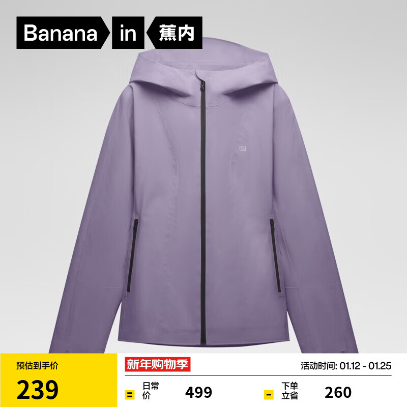 蕉内(Bananain)【赵露思同款】氧气301Proof女士冲锋衣防风户外短外套秋冬 烟莓紫 M